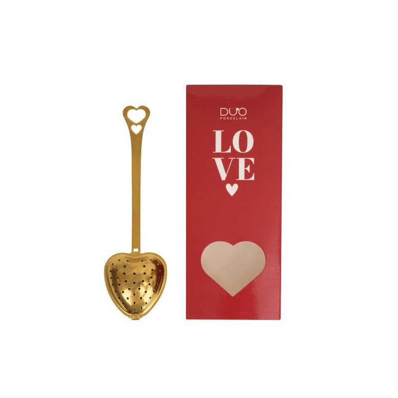 Filtro dorado en forma de corazón de acero inoxidable, en caja de regalo. 4cm diámetro.