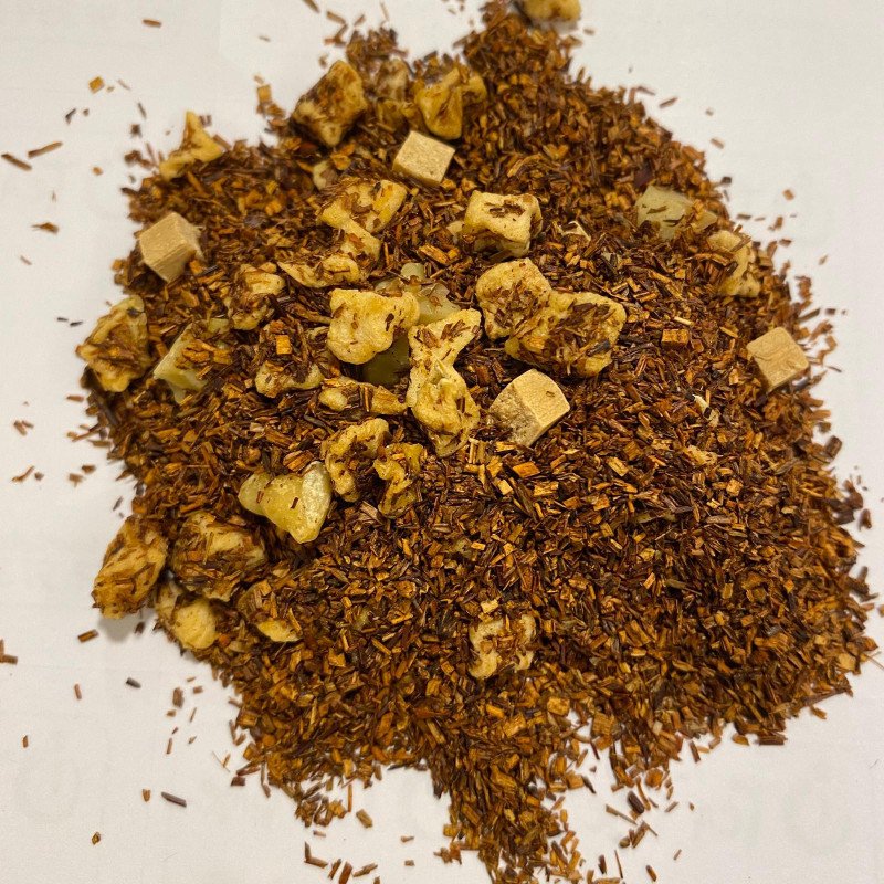 Rooibos con nueces, caramelo toffe y trocitos de manzana.