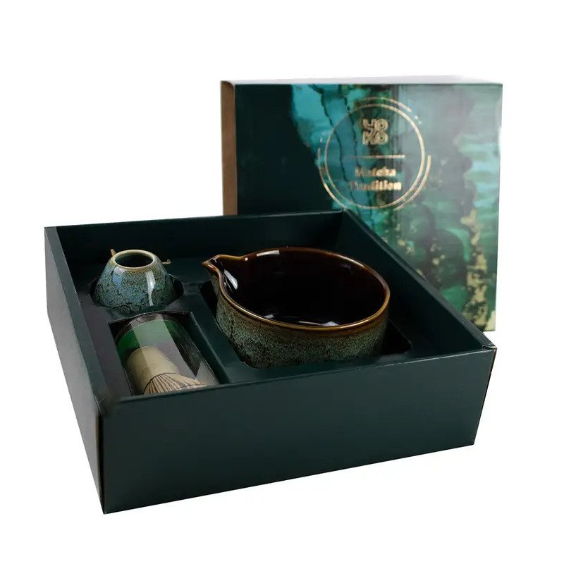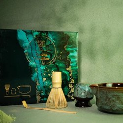 Set para matcha "Aurora" con cuenco de cerámica japonesa de 0,5 l., en caja de regalo. Incluye cucharita medidora, batidor y soporte.