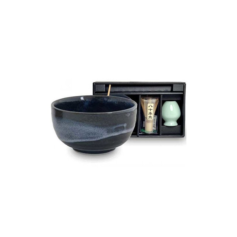 Set para matcha "Aurora" con cuenco de cerámica japonesa de 0,5 l., en caja de regalo.